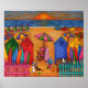 Cena de praia de verão colorida e viva pintada em uma composição criativa com um pôr do sol impressionante pela popular artista emergente Lisa Lorenz