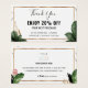 Design moderno e elegante imprimiu Folhas Tropicais de Verão e Placa de Voucher de Desconto de Quadros Glitter Dourada que pode ser personalizada com o seu texto. Clique no botão "Personalizar" e use nossa ferramenta design para modificar este modelo. Veja a Design de Arte Gráfica para outros produtos que combinam com este design!