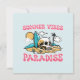 Este cartão de saudação mostra um crânio na areia e a frase "Summer Vibes Paradise." É ideal para capturar estilo de surfista, vibes de praia e aventuras de verão.