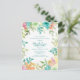 Novo para o Verão de 2024. A cor da água floral de Verão moderna e colorida apresenta flores cor-de-rosa, azuis-turquesa, amarelas e laranja. Eles formam uma estrutura botânica, rústica e bófia em torno de seus detalhes de festa de aniversário. Este item faz parte da coleção de Flores de Aquarela de Verão. Contém modelos de convite, sinais de boas-vindas e decorações de festas.