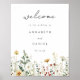 This design is perfect for spring and summer weddings, featuring a watercolor border of wildflowers in shades of red, gold, green, and blue.