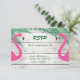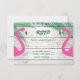 flamingos cor-de-rosa divertidos e palmeiras verdes tropicais destacam esta tendência de casamento RSVP em um fundo de madeira branqueada ao sol, fazer-a perfeita para um destino, praia, Havaí, Caribe ou casamento tropical. Itens de coordenação podem ser encontrados na Coleção Sun Kissed Flamingo Wedding.