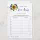 Este jogo de chá de panela é um jogo de música do amor. A anfitriã toca pedaços de músicas de amor. Os convidados escrevem o nome e o artista nos cartões. Os pontos são pontuados para cada resposta correta. O jogador com os pontos mais altos ganha um prêmio. Estes cartões apresentam um girassol de cor d'água e um design floral azul com luzes de cordas. Personalize estas cartas com o nome da noiva. Itens correspondentes disponíveis.