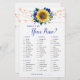 Este cartão de jogo de chá de panela é O que há na sua bolsa? O design apresenta girassóis de aquarela e flores rosa azuis com folhagem e linhas. Personalize a parte de trás das cartas com o nome da noiva. Produtos correspondentes disponíveis.