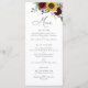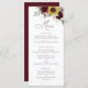 Placa de Menu de Casamento Floral Verde Floral da Sunflower Burgundy. Menu Rustic Wedding