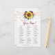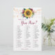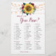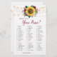 Este cartão de jogo de chá de panela é O que há na sua bolsa? O design apresenta girassóis e rosa-flores de cor d'água com folhagem e linhas. Personalize a parte de trás das cartas com o nome da noiva. Produtos correspondentes disponíveis.