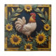 "brown chicken on black", "farm egg laying hen", "yellow sunflower flowers", "summer sunflowers floral", "farming fowl poultry", "rural rustic ceramic tile", "farmhouse countryside country", "green leafy leaves", "cute chickens", "rooster mom dad gift"