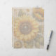 Scrapbook paper with sunflowers background design. Size 8.5 x 11 inch paper - or choose another size. Beige linen fabric images (not real linen) cover both sides with big sunflowers on one side and a smaller pattern on the other. No lines or text. Use in binders, junk journals, or for writing letters.