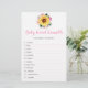 Este jogo de chá de fraldas é um jogo de palavras de bebês com 12 palavras para desembaralhar. Apresenta um girassol de cor d'água e um design floral cor de rosa. Personalize o texto no verso com um nome.