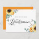 Você será meu homem de honra? Cartão de proposta do bridesman de tema de outono. Apresenta girassóis a aquarelas, abóboras, algodão e folhas de eucalipto com caligrafia moderna rustica. Personalize adicionando nomes e mensagens.