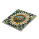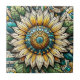 This stunning design features an intricate mosaic of blooming sunflower, crafted from delicate tile-like shapes that create the look of hand-set stained glass. Blue green and yellow petals swirl gracefully against a backdrop of teal, aqua, and gold, forming a harmonious blend of elegance and movement. Lush green leaves add natural depth, while the flowing, curving patterns around the flowers evoke a sense of gentle motion and timeless artistry. Perfect for adding a touch of classic beauty and sophisticated charm to any product or space.
