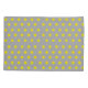 A repeating pattern featuring bright yellow splatter-style dots set against a smooth grey background.