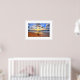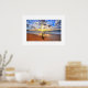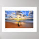 Poster mostrada com uma borda branca e uma impressão fotográfica de uma bela cena de praia por pôr do sol. Personalize este item ou comprar como está. Imagem do stock