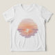 This minimalist hand-drawn design captures serene ocean waves reflecting a beautiful sunset sky. With soft orange, pink, and purple tones and a subtle watercolor texture, it creates a calm, elegant, and relaxing beach mood. Perfect for boys who love summer vibes, beach adventures, and stylish, modern artwork. High-resolution, print-ready, and ideal for t-shirts, this design brings tropical sunset magic to everyday wear.