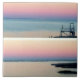 Sunset cor-de-rosa sobre água e foto quebrada do p