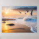 Poster é mostrado com uma impressão de foto de uma bela cena do sol da praia. Personalize este item ou comprar como está.