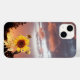 Foto colorida, paisagem de verão com nuvens roxas rosas mágicas e girassol amarelo. Fotografia artística e design gráfico por Alessandro Lumini (c)