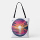 Drift into golden hour with this stunning tote bag featuring a stylized tropical sunset framed in a circular composition. Vivid purples, pinks, oranges, and yellows paint the sky and sea, while silhouetted palm trees and soaring birds add a tranquil, coastal vibe. Swirling brushstrokes enhance the dreamy atmosphere, making this tote perfect for beach lovers, travelers, and anyone who finds peace in nature’s palette. Durable, reusable, and visually captivating—this tote is your daily escape to paradise.