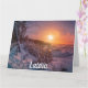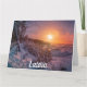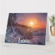 Sunset sobre o cartão da costa da neve