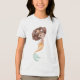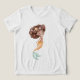 This watercolor illustration features a joyful mermaid with curly brown hair decorated with soft sea stars, pastel dots, and tiny ocean details. Her warm orange tail fades gently into a light mint fin, creating a harmonious sunset-inspired color palette.