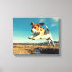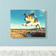Cachorro de beagle enérgico pulando em um pequeno riacho de campo!