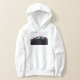 este agradável e quente casaco de suéter branco de inverno apresenta um carro super esportivo legal e metálico com um espantoso e belo efeito na estrada