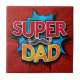 Os Azulejos Decorativos do Super Pai Mustache Moderno Grunge apresentam o texto "Super Pai" na tipografia moderna vermelha e amarela, em um fundo azul e vermelho, acentuado com bigode. Presentes para Pai de aniversário, Dia de os pais, Natal, feriados e muito mais. Criado pelo Evco Studio www.zazzle.com/store/evcostudio