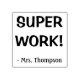 Este carimbo contém a mensagem "SUPER WORK!". Também apresenta o nome de um professor personalizado. Poderia ser usado por um professor para marcar uma tarefa em que um aluno fez um trabalho particularmente bom.
