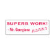 Este design de carimbo motivador apresenta a mensagem "SUPERB WORK!" e o nome de um professor personalizado. Também apresenta notas musicais decorativas. Pode ser usado por um professor ou educador ao marcar tarefas, para reconhecer que um aluno fez bem.