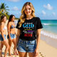 This resilient black tee proclaims the message of Isaiah 12:2: "SURELY GOD IS MY Salvation. I WILL TRUST AND NOT BE AFRAID". The vibrant, multi-color distressed text emphasizes the certainty of divine protection and the importance of unwavering trust over fear.