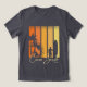 Este design de praia surfando mostra palmeiras, um pôr do sol antigo, a silhueta de surfistas, e o texto, "Praia do Cacau, Flórida."