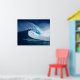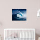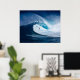Poster é mostrado com uma impressão de foto de um surfista cavalgando a onda. Personalize este item ou comprar como está. Imagem do stock