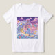 Atravesse as ondas da moda do verão com esta t-shirt única que inclui uma rainha da água-viva surfadora e golfinhos lúdicos. Esta é para a mulher aventureira que adora expressar seu estilo caprichoso e inspirado no oceano.
