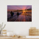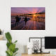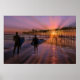 Vivendo o sonho no sul da Califórnia. Dois surfistas seguram suas conselhos enquanto observam um dramático pôr do sol no Oceanside Pier.