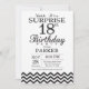 Surpreenda o 18o convite do aniversário com Chevron preto. Preto e branco. Aniversário adulto. O homem ou as mulheres Bday convidam. Para uma personalização mais adicional, clique por favor "personalizam-no" botão e usam-nos nossa ferramenta de design para alterar este modelo.