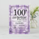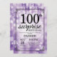 Surpreenda o 100th convite do aniversário com luzes roxas da corda com fundo roxo do brilho. Aniversário roxo. Aniversário adulto. Os homens ou as mulheres Bday convidam. 13o 15o 16o 18o 20o 2ø 30o 40th 50th 60th 90 100th do 80 do 70, alguma idade. Para uma personalização mais adicional, clique por favor "personalizam-no" botão e usam-nos nossa ferramenta de design para alterar este modelo.