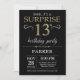 Surpreenda o Convite de Aniversário de 13 com fundo de cinzas preto e Dourado. Chalkboard. Aniversário de crianças. Menina ou Menina Menina Adolescente Convidam. Qualquer idade. Para mais personalização, clique no botão "Personalizar" e use nossa ferramenta de design para modificar este modelo.