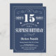 Surpresa 15 de Aniversário Convite Azul e Tipografia Branca. Fundo Azul. Aniversário de crianças. Homens ou Mulheres Aniversário. Menino ou Menina Menina Menina Adolescente Convidam. 13 15 de 16º 18º 20 21rua 30 de 40º 50º 80 de 60º 70 de 100º. Qualquer Idade. Para mais personalização, clique no botão "Personalizar" e use nossa ferramenta de design para modificar este modelo.