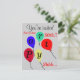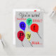 Surpreenda a 50ª Festa de aniversário. Pode ser personalizado para qualquer idade. Balões de aniversário voadores coloridos incluindo vermelho, azul, amarelo em fundo prateado. A palavra Partido está escrita em balões. A parte traseira tem detalhes de data e local da parte em um plano de fundo branco. Clique em PERSONALIZAR TI para alterar as cores de fundo. Design de Arte Original por TamiraZDesign.