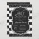 Surpresa 60º Convite de Aniversário para mulheres ou homens. Convidar Festa de aniversário preto e Dourado. Glitter Prateado Confetti. Black and White Stripes. Digital Imprimível. Para mais personalização, clique no botão "Personalizar" e use nossa ferramenta de design para modificar este modelo.
