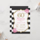 Surpresa 60º Convite de Aniversário. Preto rosa e Dourado. Dourada Glitter. Black and White Stripes. Flor Floral Rosa. Aniversário Adulto. Festa de aniversário feminina.