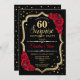 Surpresa 60º Convite de Aniversário. Preto feminino, design vermelho com ouro brilhante falso. Apresenta rosa vermelha, fonte de script e confetti. Perfeito para uma bolsa mensageifesta de aniversario elegante. Pode ser personalizado para mostrar qualquer idade. Envie-me uma mensagem se precisar de mais personalização.
