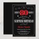 Surpresa 80 de Aniversário Invitation Typografia Vermelha e Negra. Chalkboard. Fundo preto e branco. Aniversário Adulto. Homens ou Mulheres Aniversário. Menino ou Menina Menina Menina Adolescente Convidam. 13 15 de 16º 18º 20 21rua 30 de 40º 50º 80 de 60º 70 de 100º. Qualquer Idade. Para mais personalização, clique no botão "Personalizar" e use nossa ferramenta de design para modificar este modelo.