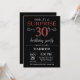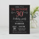 Convite para aniversário de 30 anos surpresa com fundo brilhante preto e vermelho. Chalkboard. Aniversário Adulto. Homens ou Mulheres no Dia Convidam. Qualquer idade. Para mais personalização, clique no botão "Personalizar" e use nossa ferramenta de design para modificar este modelo.
