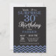 Convite para aniversário de 30 anos surpresa com Chevron preto e azul. Chalkboard. Aniversário Adulto. Convidam o Homem ou a Mulher Bday. Para mais personalização, clique no botão "Personalizar" e use nossa ferramenta de design para modificar este modelo.