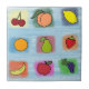 Esta design é de diferentes tipos de fruta, gravada em um fundo azul e cada fruta está em um pano de fundo colorido. Esta imagem está disponível em uma variedade de outros produtos, basta clicar no link abaixo da foto perto de 'Sobre este Design'.