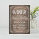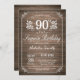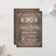 Surpresa Rustic 90 Birthday Invitation com fundo de madeira rustica e padrão de flor floral. Aniversário Adulto. Homens ou Mulheres Aniversário. Menino ou Menina Menina Menina Adolescente Convidam. 13 15 de 16º 18º 20 21rua 30 de 40º 50º 80 de 60º 70 de 100º. Qualquer Idade. Para mais personalização, clique no botão "Personalizar" e use nossa ferramenta de design para modificar este modelo.