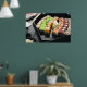 Poster mostrada com uma impressão fotográfica de sushi com aparência de excelente. Personalize este item ou comprar como está. Imagem do stock