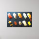 Experience the elegance of traditional Japanese cuisine through this captivating sushi canvas art. Ten exquisite nigiri, including tuna, salmon, salmon roe, and egg, are each delicately presented on a polished slate plate. Perfect for the modern kitchen, sushi restaurant, or for lovers of minimalist Japanese design.