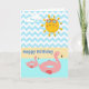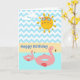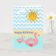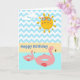 O Cisne Personalizado De Cartão De Aniversário Bonito Flutua Em Água Com Sol E Padrões De Fundo. O cartão personalizado pode ser alterado para o ajustado das suas necessidades.